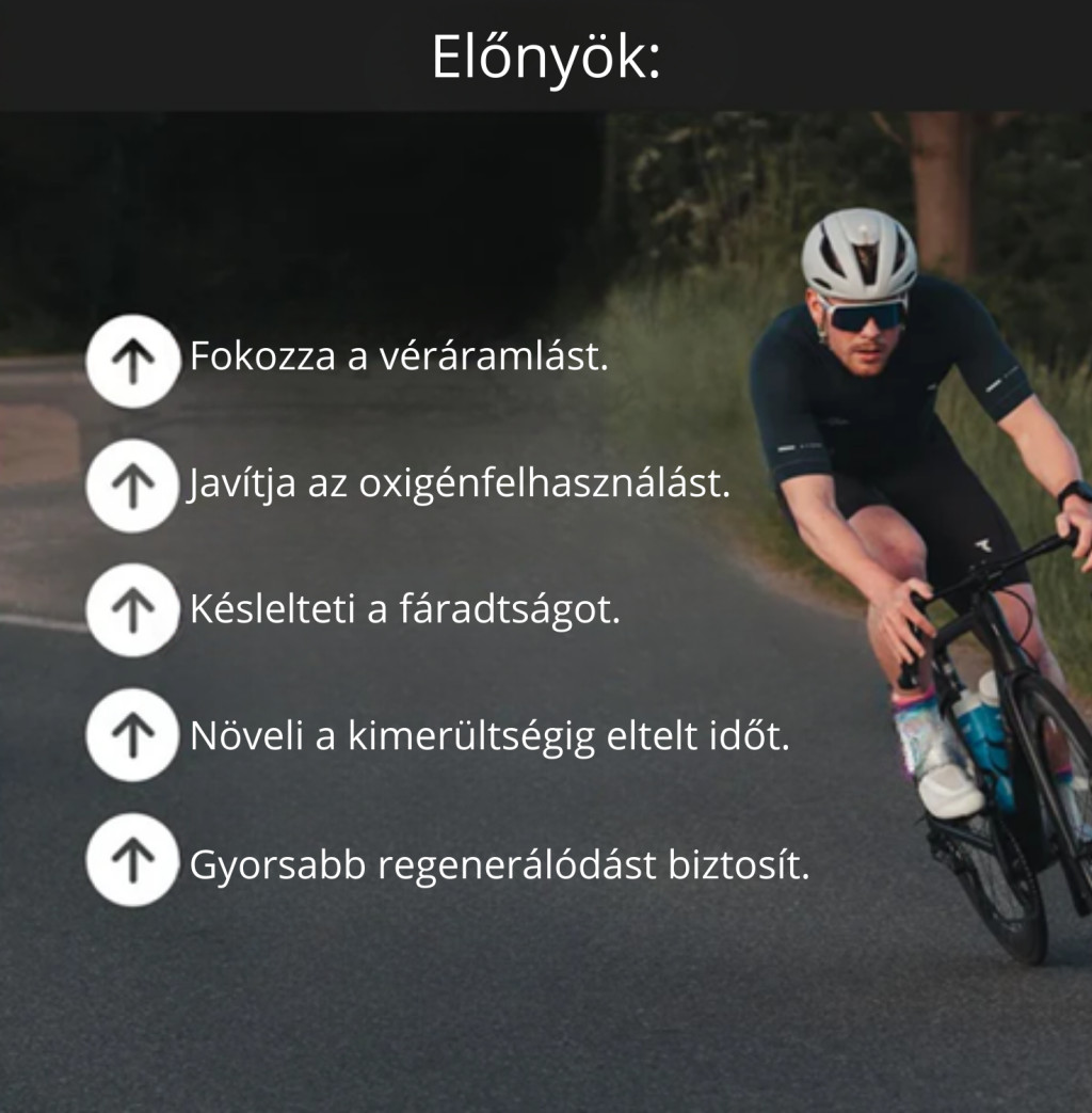 A nitrátok a szervezetben nitrogén‑monoxiddá alakulnak, amely kitágítja az ereket, javítja a véráramlást és több oxigént juttat az izmokhoz. Ez közvetlenül hozzájárul a jobb teljesítményhez, a hatékonyabb oxigénfelhasználáshoz és a fáradtság késleltetéséhez.